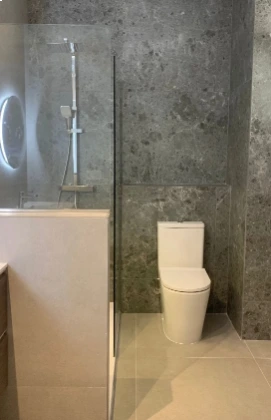 Descubre la modernidad con un toque cálido en nuestro proyecto de reforma completa de baño, «Sorni 11-B». Con piezas porcelánicas de gran formato en grises y mobiliario de madera, creamos un espacio funcional y acogedor.