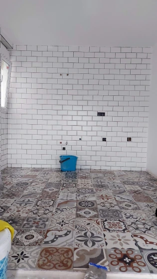 *Mobiliario en Tonos Blancos: El mobiliario en tonos blancos se fusiona perfectamente con el alicatado, creando una estética limpia y moderna.