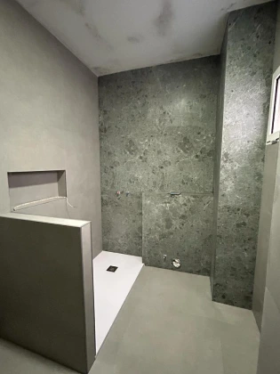 *Piezas porcelánicas de gran formato en tonos grises para un ambiente contemporáneo. *Mobiliario en madera maciza para aportar calidez y estilo único. *Diseño que fusiona funcionalidad y estética, maximizando el espacio. *Contrastes entre supercies pulidas y texturas naturales para un impacto visual. *Iluminación estratégica que resalta detalles y crea una atmósfera elegante. En «Sorni 11», cada detalle se ha seleccionado con precisión para ofrecer una experiencia de baño que combina la modernidad con la comodidad, creando un espacio único y estéticamente agradable.